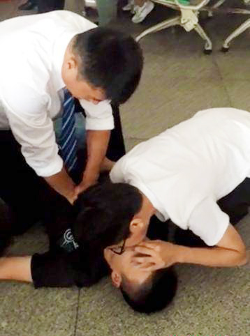 9月22日10时许,在安徽阜阳火车站里发生了暖心的一幕,家住安徽淮南的22岁大学生小尹(化名)突然倒下,心脏骤停。我校临床医学院15级临床医学专业学生邵旭阳与火车站职工、旅客轮番跪地施救。经过他们的及时救助,大学生小尹有了呼吸,并被立即送至医院抢救。