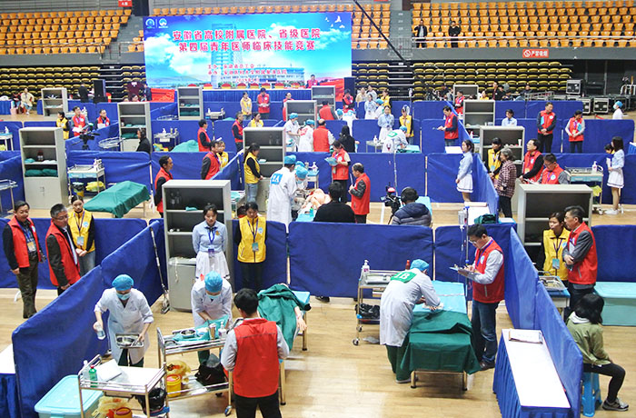 安徽省高校附属医院、省级医院青年医师临床技能竞赛,是省总工会为进一步加强全省各高校附属医院、省级医院临床医师队伍建设和临床基础理论、基本知识、基本技能的培养,提升广大青年医师的诊疗水平和业务技能,全面提高青年医师的综合素质,着力培育青年医师人才而举办的一项技能赛事。竞赛分为预赛和决赛两个阶段,预赛采用“站点式”比赛,共设8个站点。决赛采用“赛道式”比赛,每个赛道设4个考站,通过医学模型、标准化病人(SP)等内容,全面考核青年医师的临床思维、临床技能、团队精神、人文关怀和心理素质。