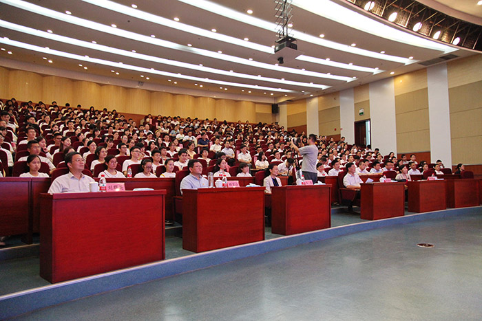 9月5日下午,由省委主题教育领导小组办公室、省委组织部统一安排,省委教育工委组织开展的“开学第一课——党的初心与使命”全省高校首场专题思政示范课在我校梅山路校区图书馆第一报告厅举行。报告会由全国“最美思政课教师”路丙辉同志结合主题教育部署要求和高校思政工作形势任务,围绕如何上好“开学第一课——党的初心与使命”专题思政课,对皖中片区高校思政课教师代表和我校学生党员进行专题辅导。省委组织部副部长王炜出席,省委教育工委副书记庆承松主持。校党委书记顾家山、校长曹云霞、校党委副书记刘群英参加了本次示范课。