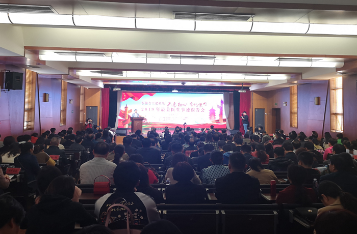 115日下午,我省卫健系统“不忘初心、牢记使命”2019年最美医生事迹报告会(蚌埠站)在蚌埠市第一人民医院举行。省委主题教育领导小组办公室、省委宣传部、省卫生健康委员会相关处室负责人及蚌埠市卫生健康系统500余名干部职工参加报告会。我校第一附属医院眼科主任医师廖荣丰受邀,以《一生只为做好一件事》为题作宣讲。