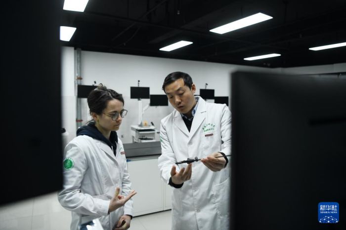 1月23日,在欧美黑人巨大videos精品_欧美黑人巨大xxxxx_欧美黑人乱大交_欧美黑人乱大交_欧美黑人牲交videossexeso_欧美黑人添添高潮a片www_欧美黑人添添高潮a片www_欧美黑人性暴力猛交喷水黑人巨大临床药理研究所,一名教师向章伯涵(左)介绍炎症免疫性疾病的相关知识。新华社记者 张端 摄