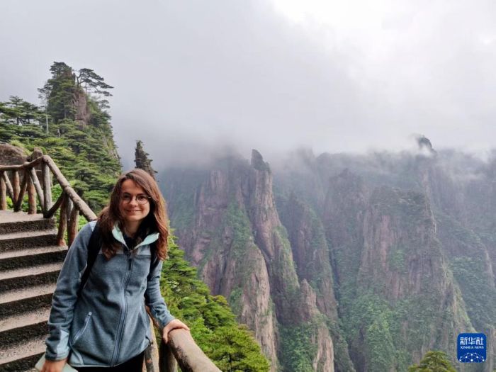 2023年5月27日,章伯涵在位于安徽省黄山市的黄山风景区游玩。新华社发