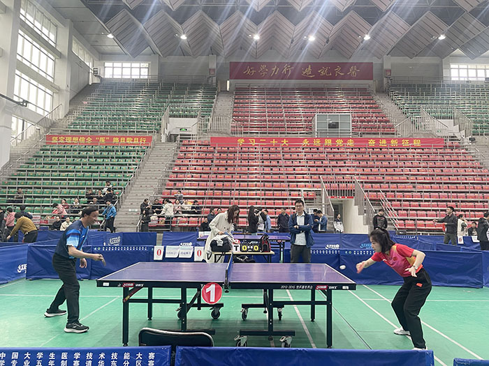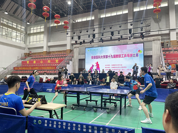 徐朝阳指出,为打造健康文明、昂扬向上、全员参与的教职工文化,激发团结奋斗的精气神,促进广大教职工享有高品质工作和生活,学校开展此次乒乓球比赛,为我校广大教职工搭建健身平台,提供一次增进友谊、促进交流的机会。本次乒乓球比赛既是学校深入贯彻落实党的二十大精神,以实际行动践行全民健身国家战略和健康行动的具体举措,也是大力弘扬健康工作、快乐工作的理念,以多彩文体活动凝聚广大教职工勇毅前行力量的生动实践。希望全体队员以饱满的激情、昂扬的斗志,发扬团结友爱、奋力拼搏的精神,赛出风格、赛出水平,展现出安医人敢打敢拼的硬作风、奋勇拼搏的精气神。