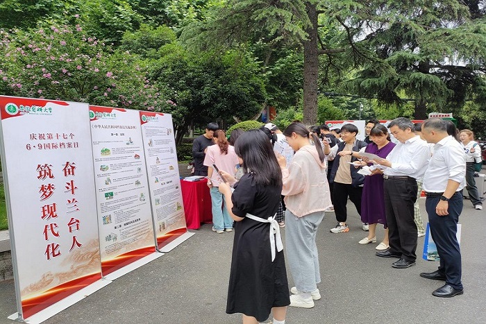 6月7日,数据信息中心(档案馆)围绕“筑梦现代化 奋斗兰台人”宣传主题,在校内开展一系列宣传活动,庆祝第十七个“6·9国际档案日”到来。副校长吕雄文现场指导活动。