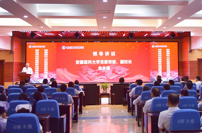 阜合产业园区、阜阳市卫生健康委、市医疗保障局、市医学会及学校医院管理处相关负责人参加活动,并共同为基地揭牌。附属阜阳医院党政主要负责人分别致辞和主持开幕式。