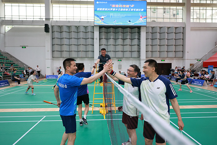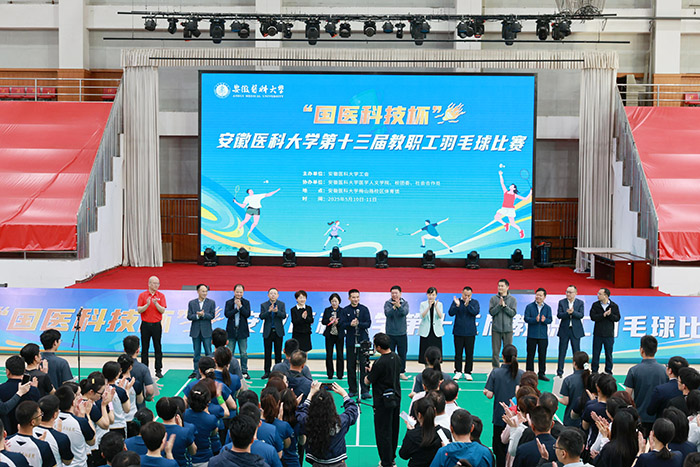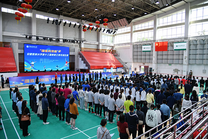 5月10日至11日,由校工会主办,医学人文学院、校团委、社会合作处协办的“国医科技杯”第十三届教职工羽毛球比赛在校本部体育馆举行。校党委书记王琦出席开幕式并全程参加比赛,校党委副书记、第一附属医院党委书记徐朝阳参加比赛,并出席闭幕式为获奖单位和个人颁奖,校党委常委、医学人文学院党委书记顾秀平主持开幕式并出席闭幕式为获奖单位和个人颁奖。安徽中技国医医疗科技股份有限公司董事长丁贞虎出席比赛并致辞,校工会主席李群致开幕辞。学校各分工会、直属附属医院的20支代表队近300名教职工参加比赛。