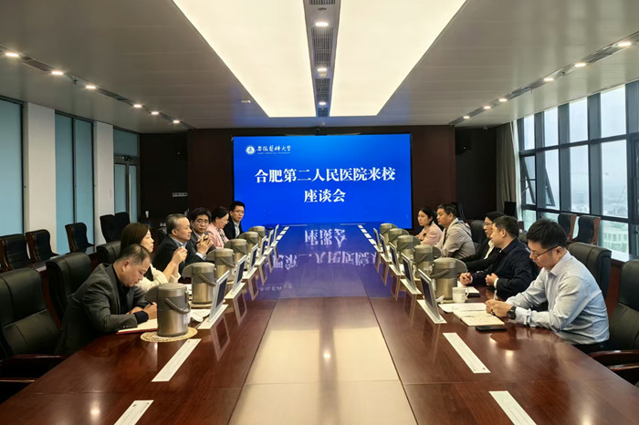 10月13日上午,合肥市第二人民医院来校交流。校长翁建平出席座谈会,校党委常委、副校长邱志海主持座谈会。
